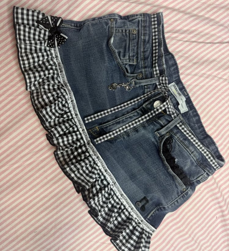 Black + white gingham ruffle hem 🖤🤍