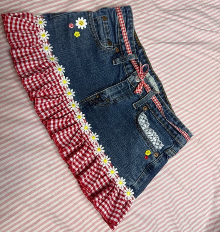 Red gingham ruffle hem ❤️🤍