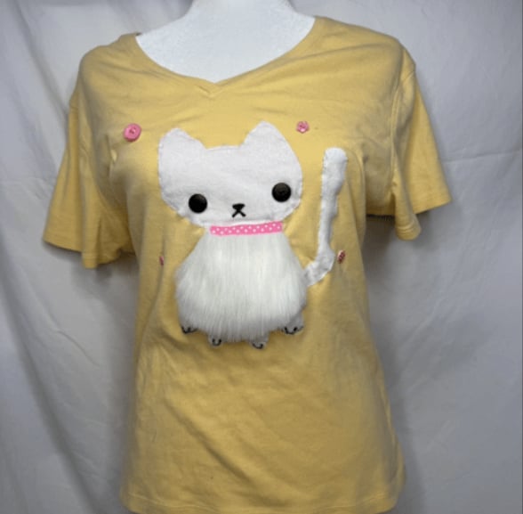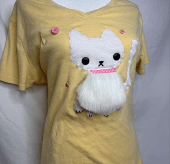 Fluffy Kitty shirt =0•0=💛 (M)