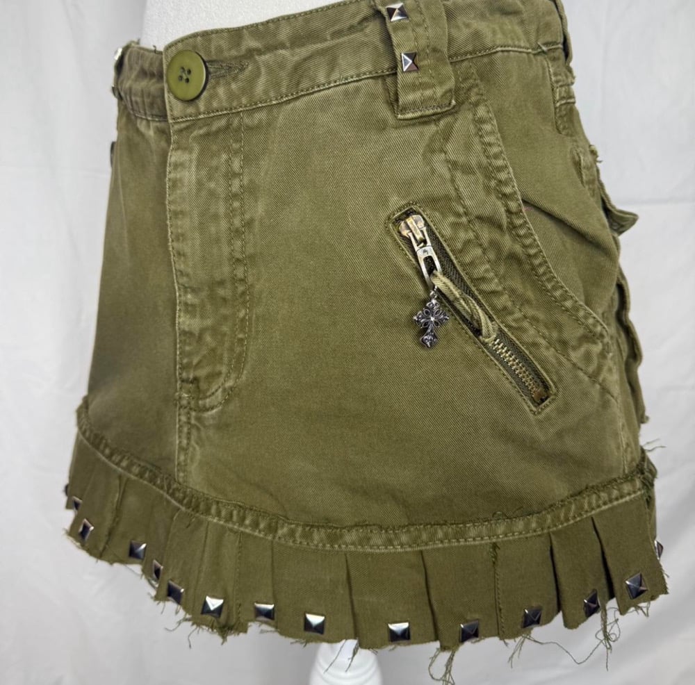 Pleated green cargo mini skirt ⋆。°✩ (M)